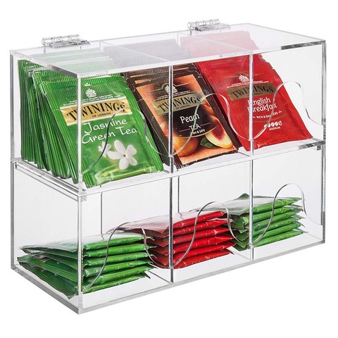 Transparent Eco-Friendly Acrylic 6-Slot Tea Bag Sorting Box Perspex Coffee & Sugar Bag Storage Rack