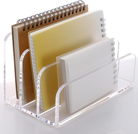 Support de rangement multi-compartiments en acrylique transparent pour ordinateurs portables et papeterie